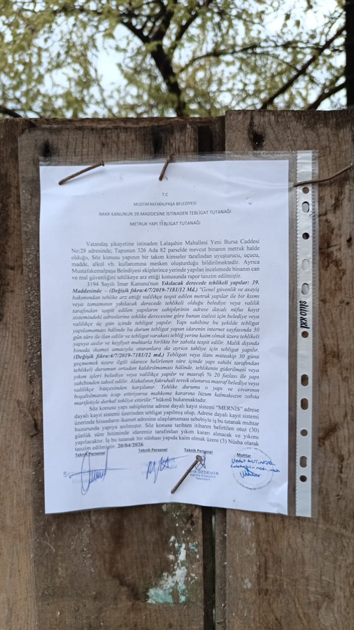 5- T.C. MUSTAFAKEMALPAŞA BELEDİYE BAŞKANLIĞI İmar ve Şehircilik Müdürlüğü Metruk Bina İlanı