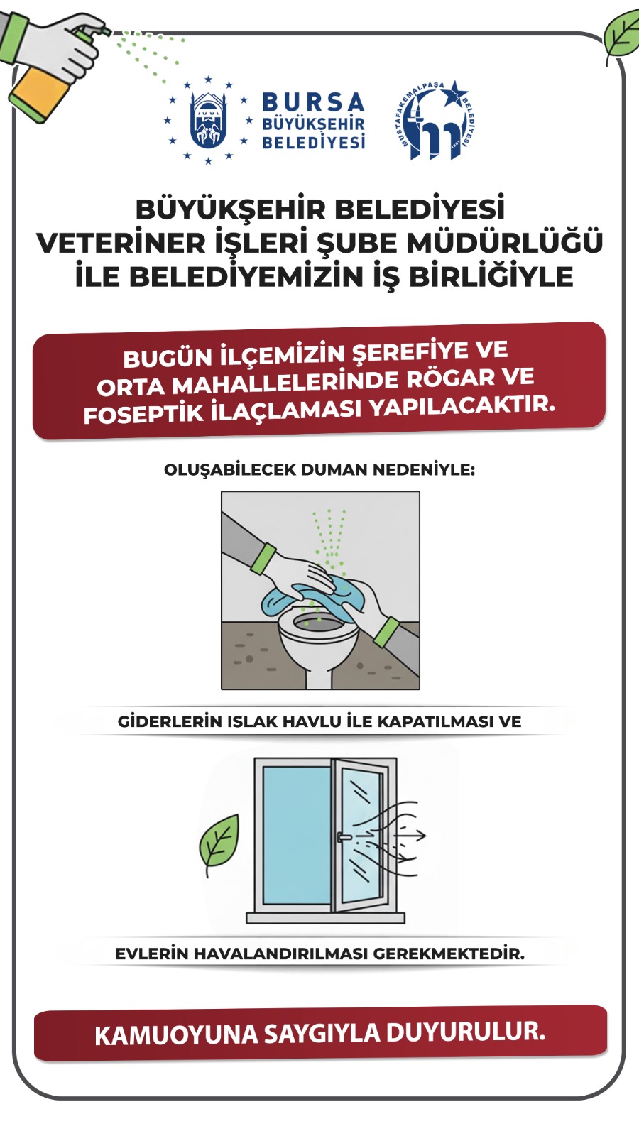 İlaçlama Duyurusu (Şerefiye ve Orta Mahalleleri)